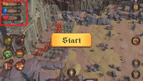 1、根据城墙边上的实时情况,玩家需要有选择的放置塔和士兵来防御;