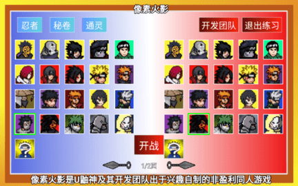 像素火影定制版是一款非常经典的横版动作类游戏,是由唤境平台开发定制的特殊版本,其中忍者的形象和技能设计看起来会更加的简单。该版本能够游玩到的角色很全面,在不熟悉的时候,可以选择用练习模式来熟悉连招,如果你也是一个动作游戏爱好者,相信这款游戏会给你带来最畅快的打击感。