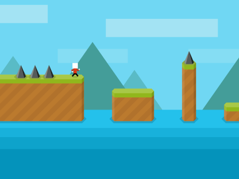 判定:游戏之中的判定是根据我们是否站在平台上方而定,如果我们角色撞在墙壁或者没站在平台上面,都视为失败情况,相反的是我们可以利用针刺间的缝隙来跳跃的。