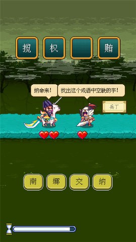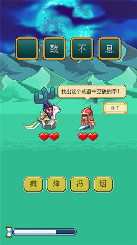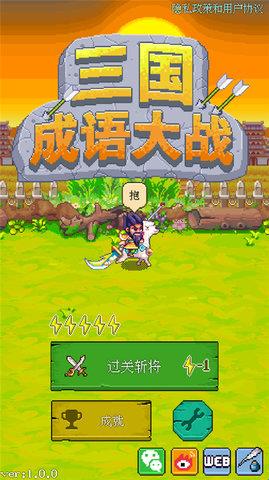 三国成语大战安卓版是一款以像素三国为背景设计的成语知识问答游戏,玩家可以扮演手持青龙偃月刀的关羽,骑着赤兔马,通过回答成语填字题来过五关斩六将。游戏的玩法是比较有新意的,只要你记忆的成语足够多,操控的战士就能战无不胜。当然,如果回答错了,角色也会被敌人打,还是蛮公平的。