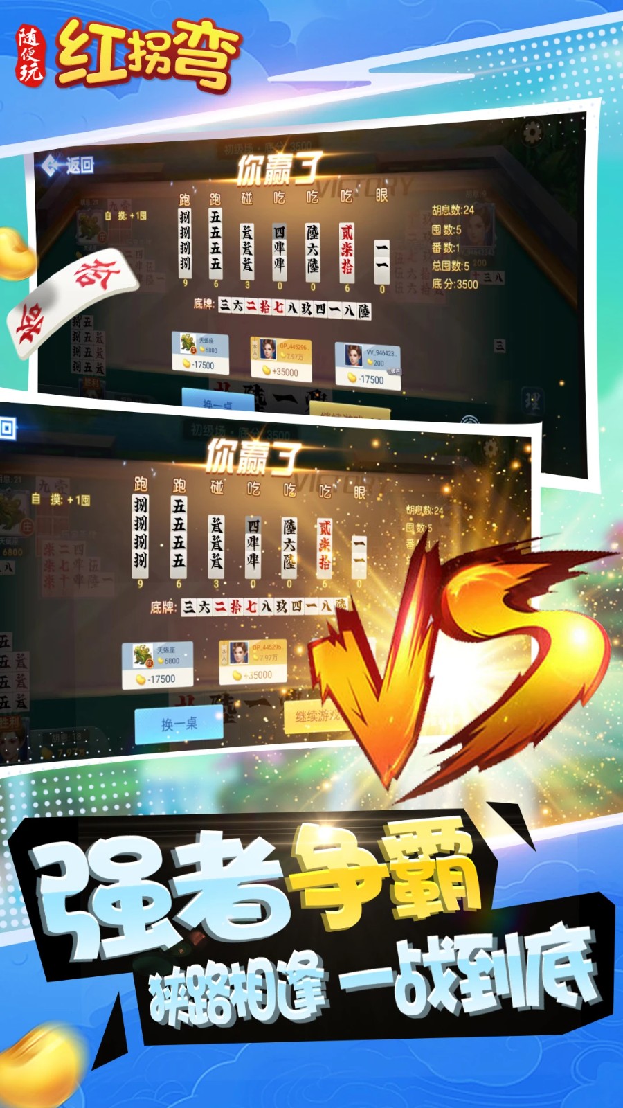 随便玩红拐弯一款经典的棋牌麻将玩法,游戏玩法内容非常丰富,原汁原味的还原了当地经典红拐弯玩法,炫酷的打牌特效、诙谐幽默的家乡语音话,精美的画面和流畅的操作,大大增加了游戏的可玩性和趣味性,让你可以在这里玩得过瘾,随时随地都能体验红拐弯乐趣,喜欢的朋友不要错过。