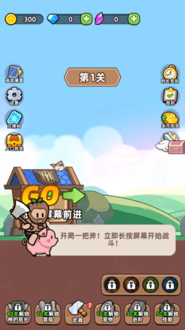 1、开局一把斧子,骑着野猪,就可以把怪物给打了。