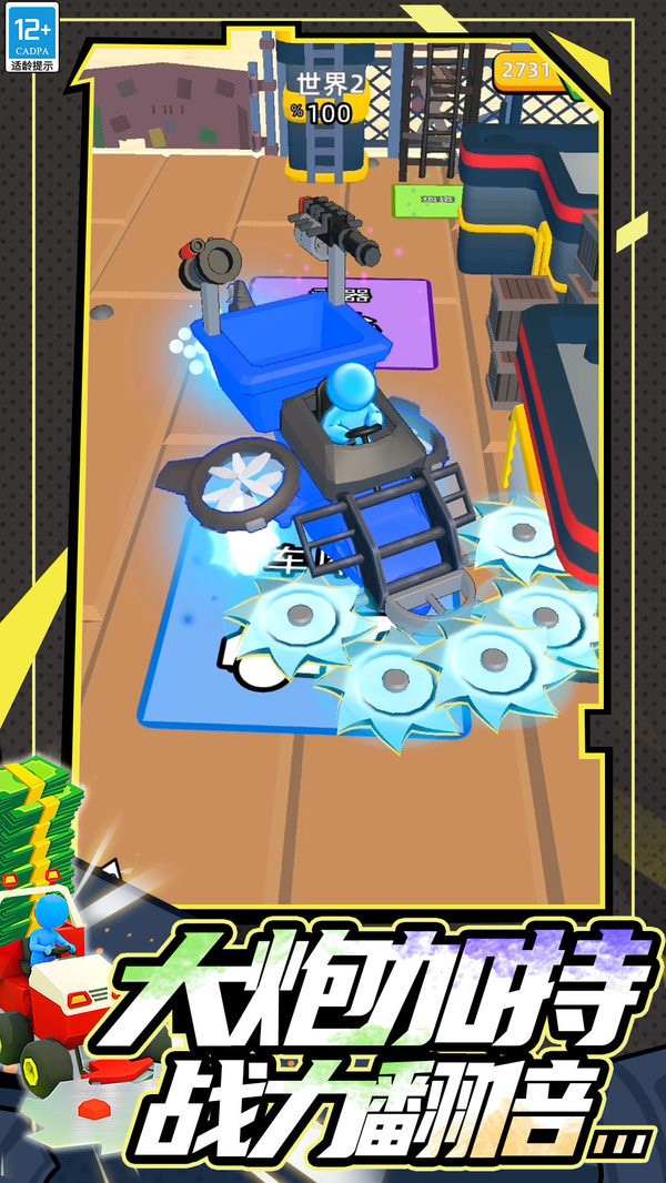 驾驶与战斗:驾驶满载武装的小推车,在丧尸群中穿梭,使用武器消灭敌人。