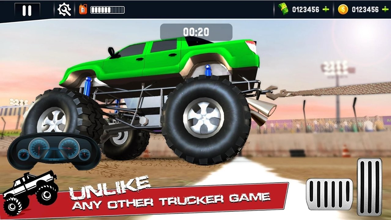 一款轻松有趣的休闲驾驶闯关游戏,游戏的操作简单容易上手,完成各种各样的挑战,玩家将不断的解锁更多不同种类的卡车大脚车,最终战胜你的对手,体现出车辆强劲的动力,游戏的玩法轻松有趣,推荐给喜欢模拟驾驶游戏的玩家。