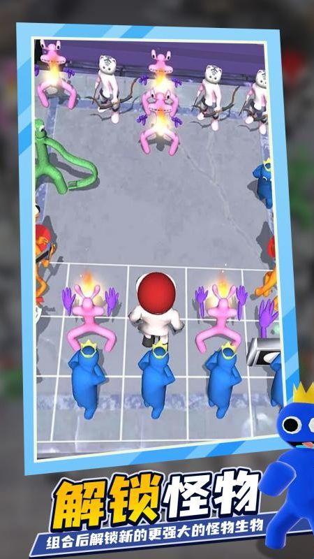 1、操控彩虹朋友与其他怪物进行战斗,通过合并升级来提升怪物的战斗能力。