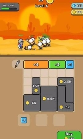 3、玩家可以将方块与武器合并以增强火力,进化角色以对抗更强大的敌人。
