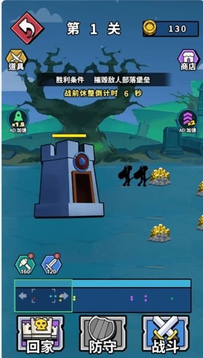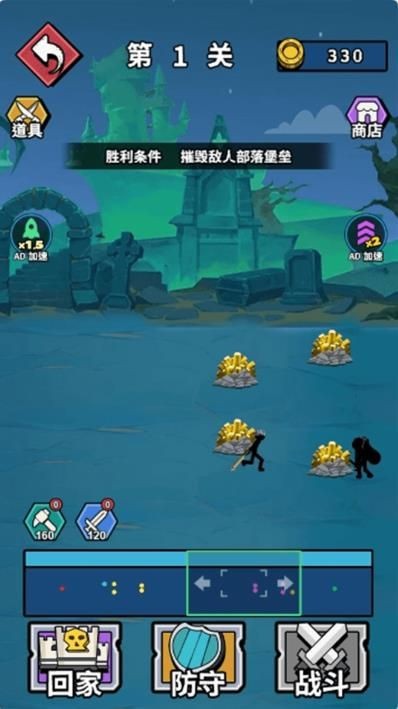 1、召唤火柴人士兵,具有不同的属性,在你的带领之下进行作战。