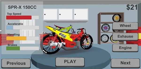 - 您可以进行许多摩托车型号和许多自定义设置。