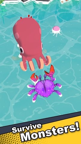 1、清晰的画面场景打造,简单的操作玩法体验,控制自己的螃蟹进行攻击;