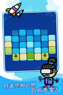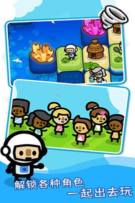 1、在方块拼接成的海洋孤岛上,和画风简约的孩子们一起外出游玩。