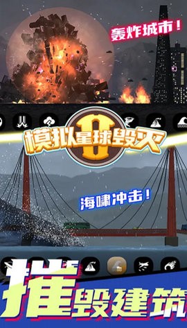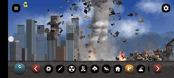 1、趣味多多的真实环境模拟,用自然灾害的力量,毁灭城市各地的建筑;