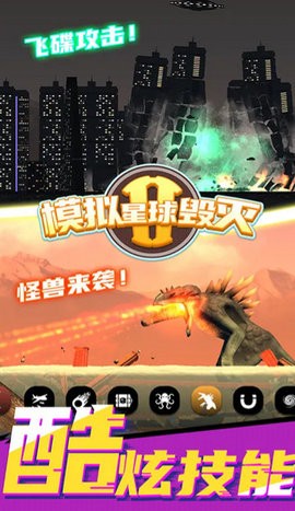 4、还能召唤怪兽进行城市的破坏,喷射火焰,焚烧城市建筑,破坏的粒子特效逼真带感。