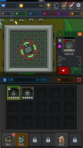 种植炮塔手机版是一款复古像素风的战争策略游戏,玩家将扮演守护人类和平的指挥官,在要塞的炮塔旁,依次指挥手下的士兵,和变异的僵尸怪物们作战。游戏将塔防的升级玩法与战棋的回合制模式巧妙结合了起来,在关键的战斗节点,合理布控火力的排布,能很好的减少压力,从而顺利通关。