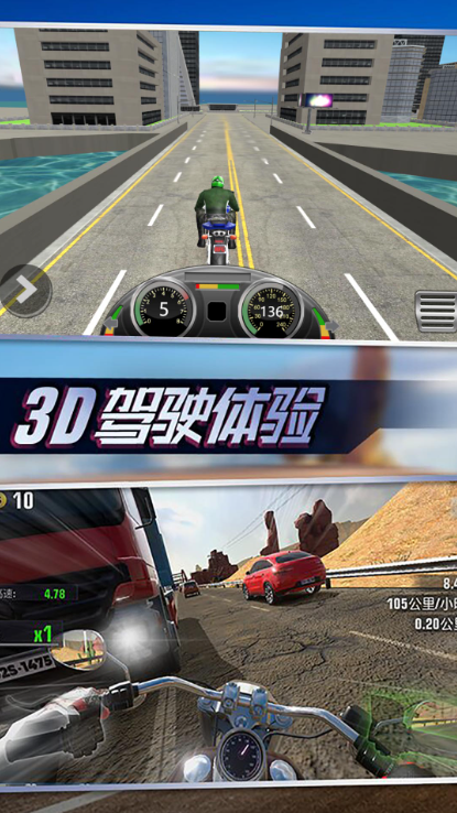 玩家作为一名摩托车驾驶员,在城市道路上磨练自己驾驶技巧的同时,欣赏周围城市的美丽风景。运用驾驶技术完成任务,全面练习玩法快速提升,最激烈的激情对抗等你的参与。参与完成任务目标的胜利项目奖励进行争夺,丰富与全面类型任务活动解锁收集!
