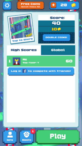 像素之塔(Tap the Tower)是一款MC风格的休闲闯关类游戏,包含了许多玩具风格的建筑设定,玩家可以从面具人、耳机哥、机器人三个角色之间做出选择,开始一场不断向上的闯关和冒险。在这个过程中,玩家的手速和反应力都非常的重要,只有不断试错,了解关卡的所有机制,才能顺利完成关卡的挑战。