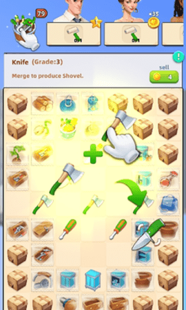 2、游戏采用了经典的三消换位操作模式,通过按住某一个消除道具与旁边的进行更换位置,当三个或以上相同的消除元素连城直线即可消除。游戏中在整理房屋的时候基本都是系统自动完成的,并不需要太过于注重操作过程,所以大家可以省略建造过程,更多关注在消除上,建造就以欣赏为主即可。