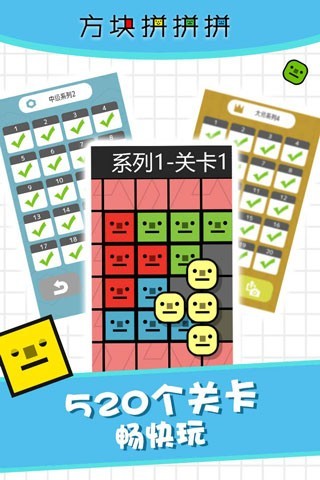 方块拼拼拼是一款休闲益智类游戏,游戏画面简洁,关卡挑战丰富,在这里玩家将要通过游戏中给予的方块来完成全部的空白填充,相比于简单的填充游戏,这款游戏在设计上还加入了不同的颜色元素,玩家不仅要完成全部的内容填充,同时还要对应相应的颜色才可以,这无形之中增加了许多挑战难度,并且每个方块格子还有不同的情绪表达,玩家还要照顾每个方块格子的情绪,该过程充满了无限情趣,但也极富烧脑,若有想要挑战的朋友,欢迎前来下载。