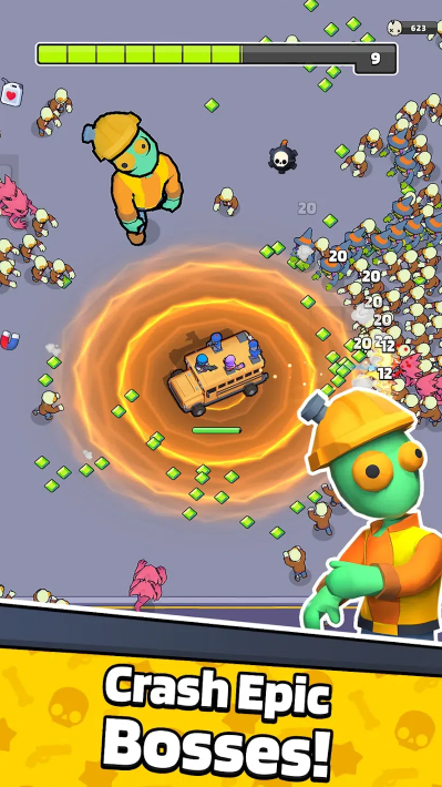 2、强化版巴士设计,坚固装甲与强大火力,轻松碾压僵尸群。