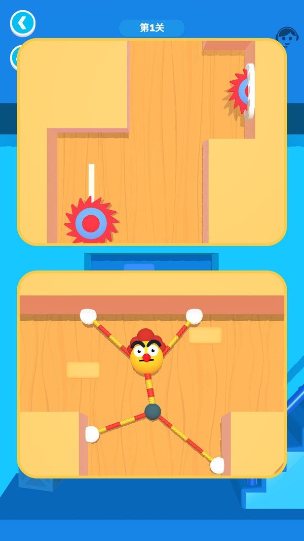 1、进入不同关卡,面对各具特色的地图和障碍物,通过操控橡皮人躲避陷阱。