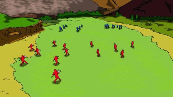 2、战斗是非常残酷的,通过这款游戏你就能够体验到,为了更好的区分两边的士兵,特意将士兵设计成红蓝两种颜色。