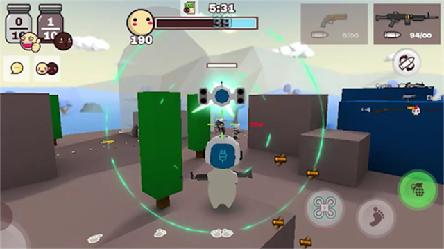 其场景虽然十分简洁,仅由大大小小、高矮不一的方块堆砌而成,但画风却软萌可爱,角色肉嘟嘟的,走路还会留下一连串小脚丫,配音也超级可爱哦。不仅如此,游戏的玩法也超级丰富,无论是经典的大逃杀模式,4v4护送模式,还有4v4的球队模式都极度的刺激,且操作简单好上手,玩家只需左边屏幕控制角色走位,右边屏幕控制角色瞄准,即可自动攻击,与对手在复杂战场中进行殊死战斗,直至生存到最后,完成如运送牛奶、填充牛奶、护送蜗牛等任务目标,获取丰厚的奖励。