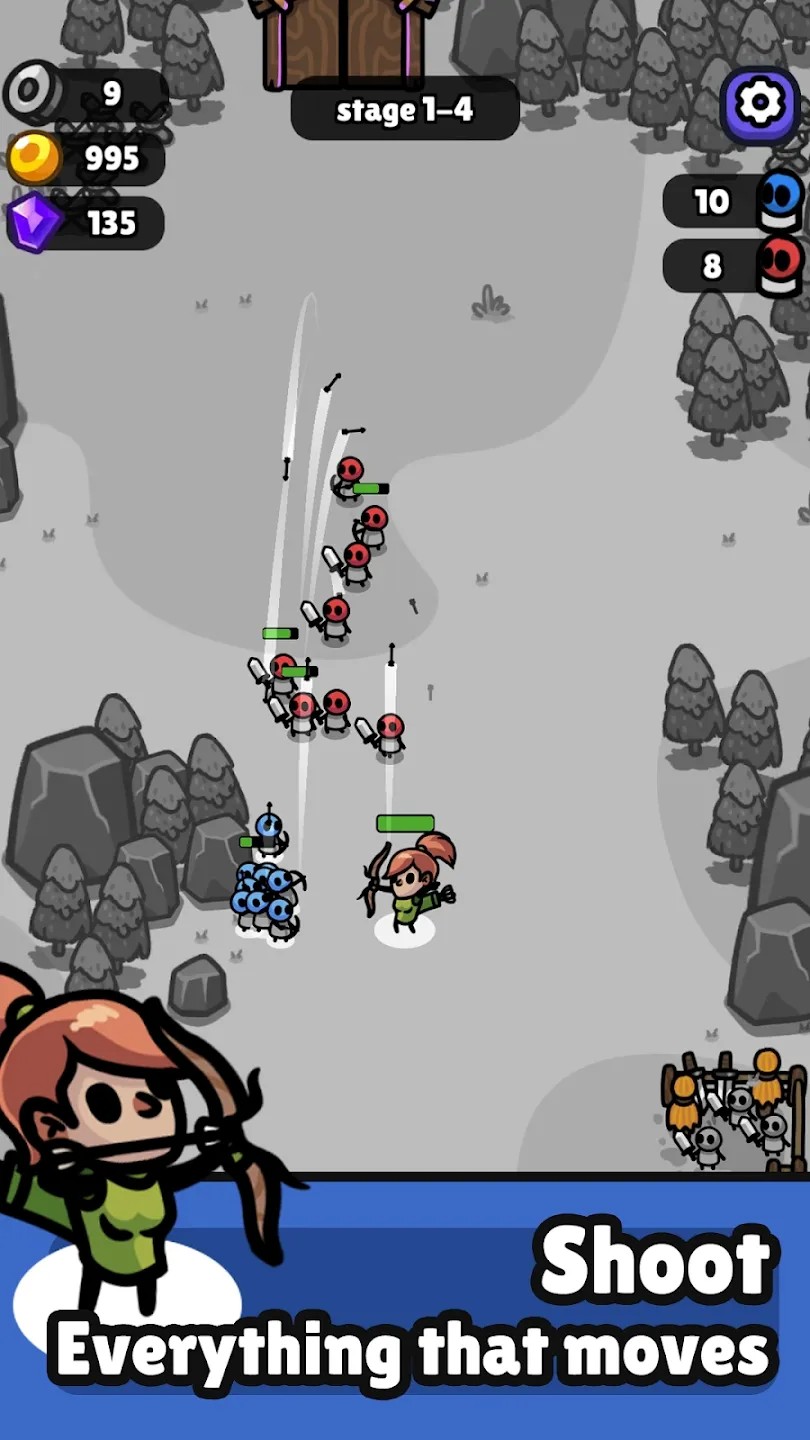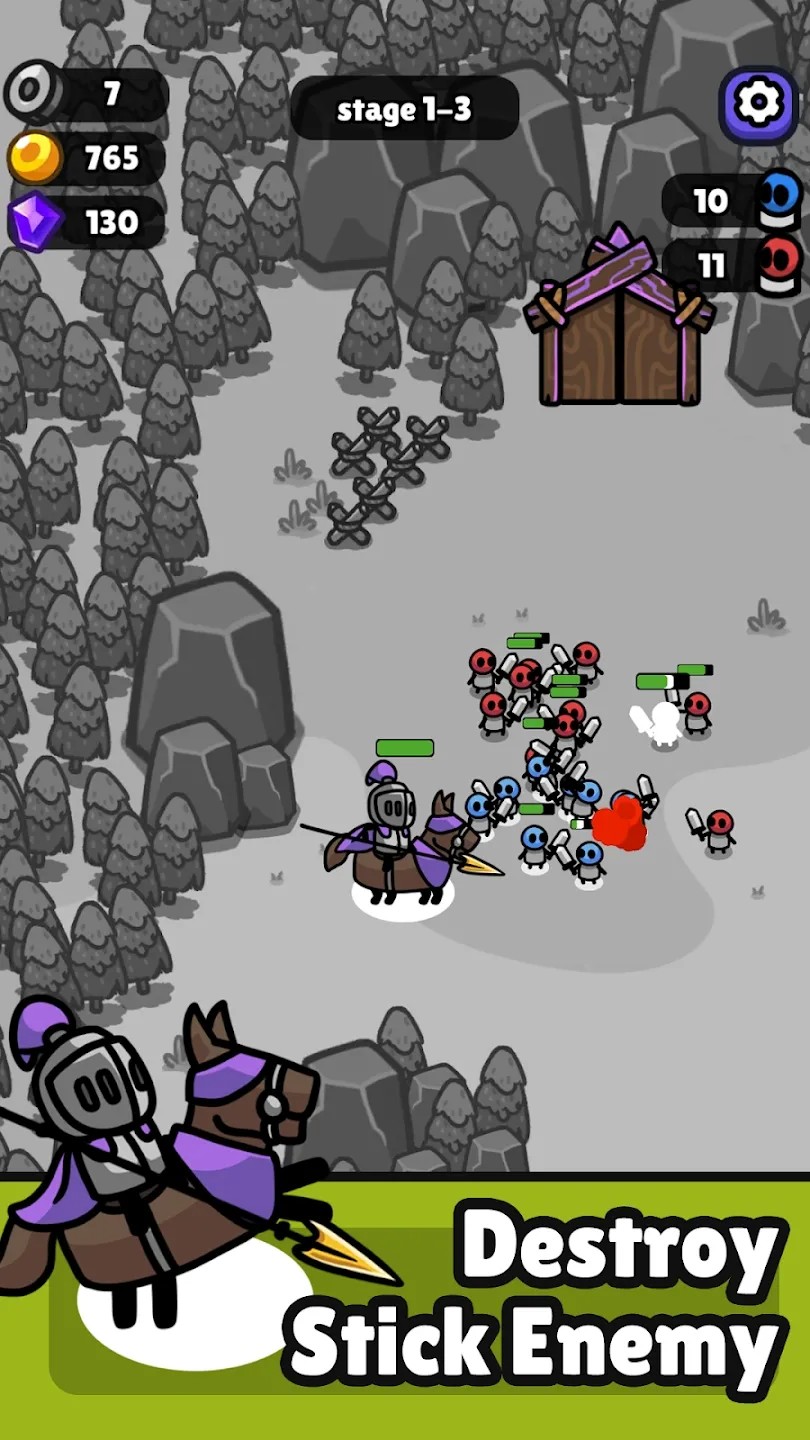 - 军队建设:使用被击败的敌人掉落的硬币来召唤和扩大你的强大军队。