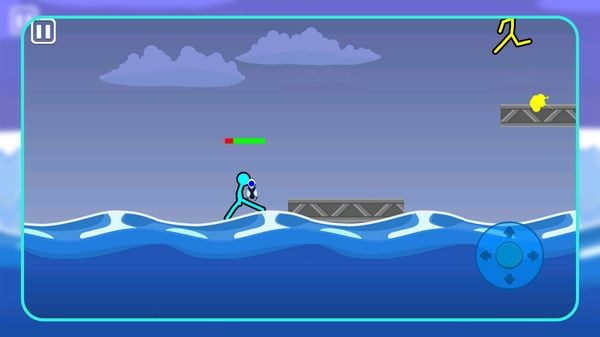 2、通过虚拟摇杆或触摸操作控制火柴人移动、攻击、防御等动作。