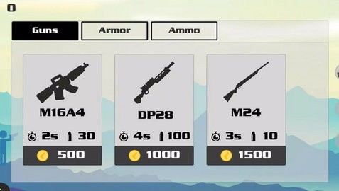 2、不要忘了收集更多的金币以购买新的枪支和盔甲,同时在游戏开始前别忘记购买额外的弹药。