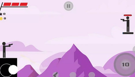 1、使用简约线条的火柴人角色,持续在不同位置的高台上,向来袭的敌人扣动扳机;