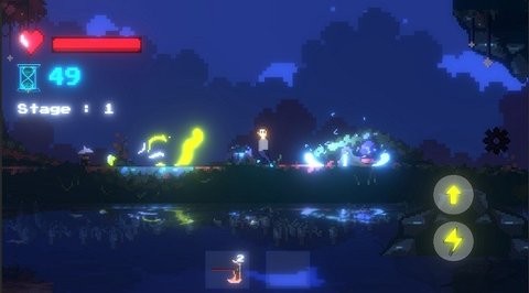 1、像素街机的冒险挑战,跳跃起来去躲开全部的危险,不同的关卡场景进行闯关。