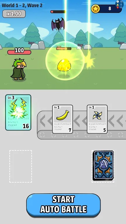 自动合成战争一款非常有趣的卡牌战斗游戏,游戏里面玩家需要使用各种不同的卡牌进行战斗,通过卡牌的技能帮助角色战胜对手,非常考验玩家的策略性,而且游戏关卡丰富,每个关卡都有不同的挑战内容和难度,让你可以在这里玩的过瘾,尽情享受游戏带来的欢乐,喜欢的小伙伴快来下载吧。