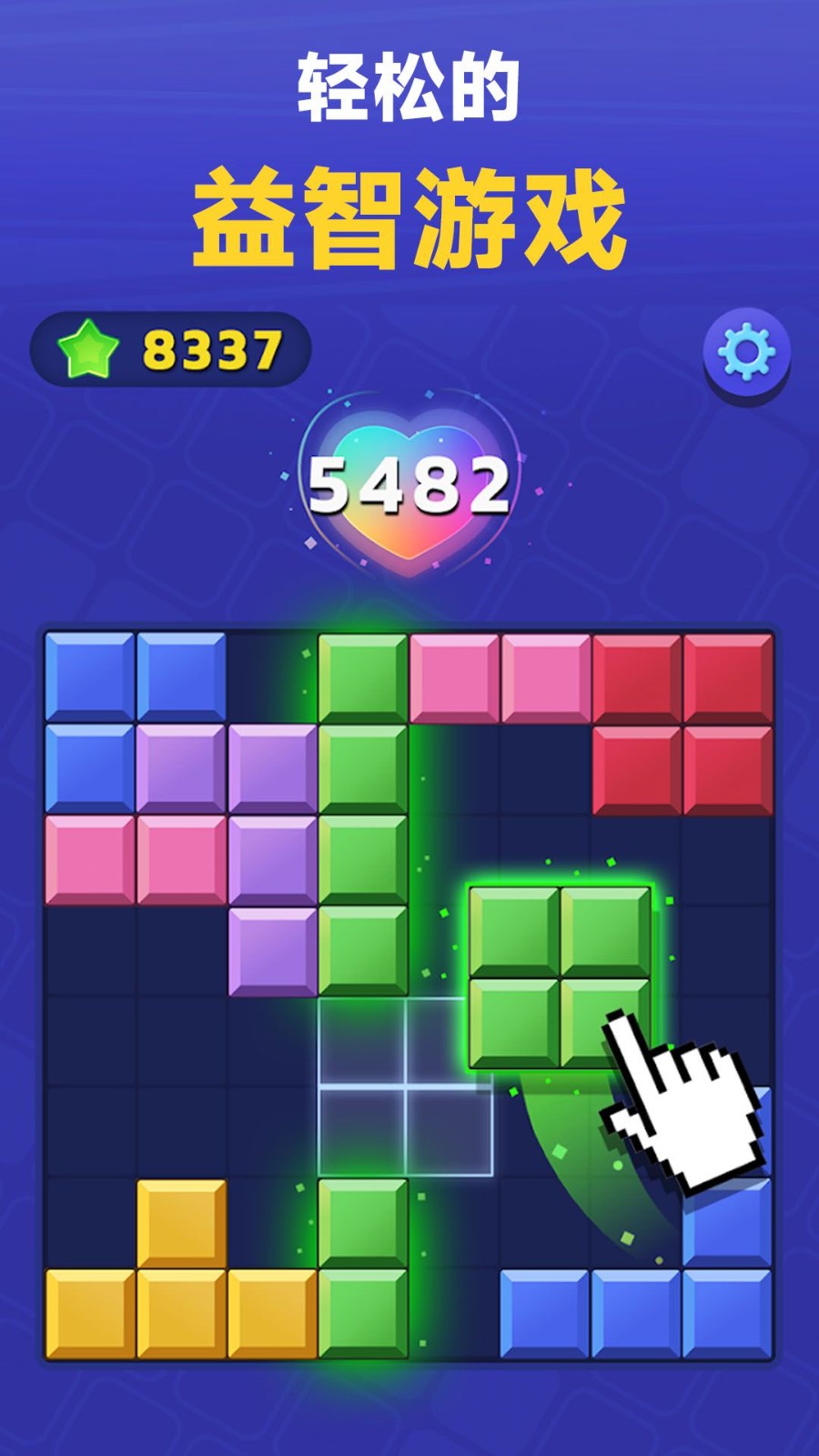 3、思考方块放置位置以实现高效消除,越玩越着迷,轻松上手很是惬意。