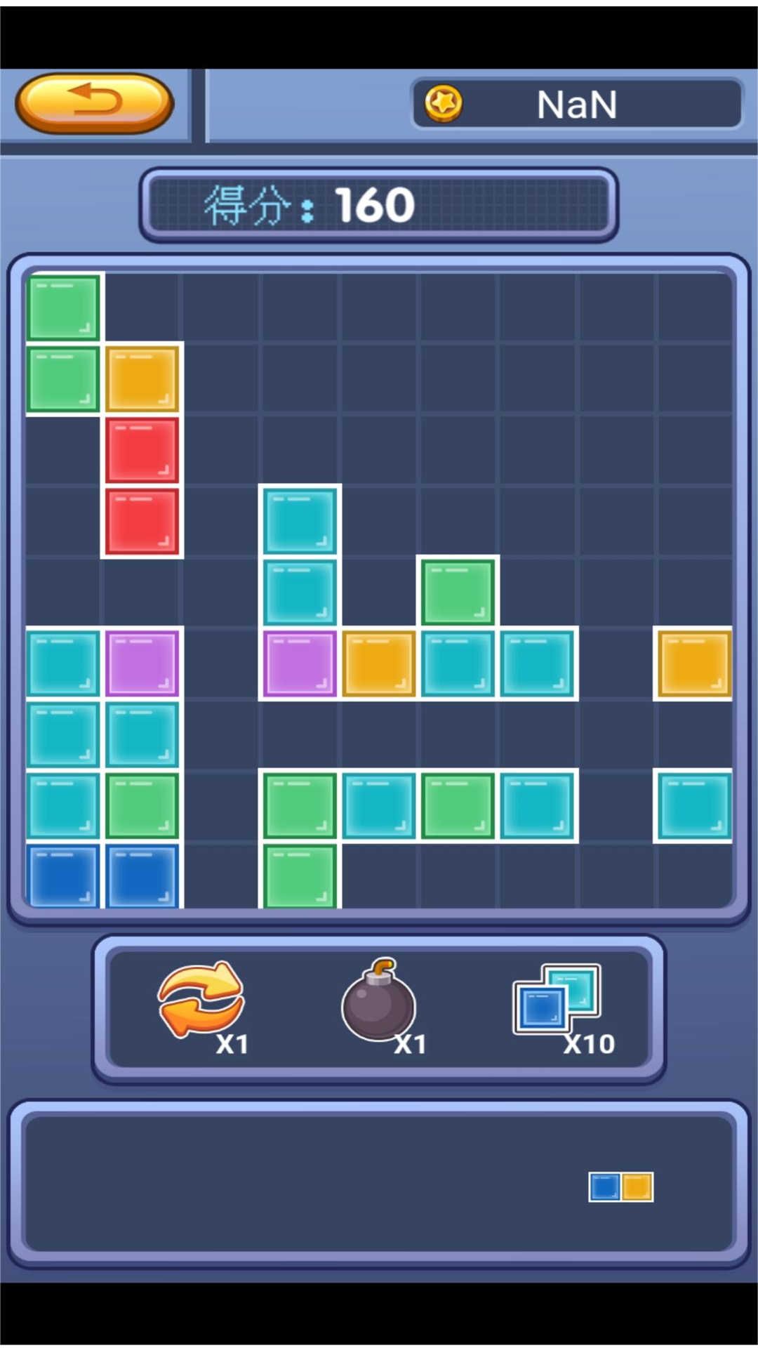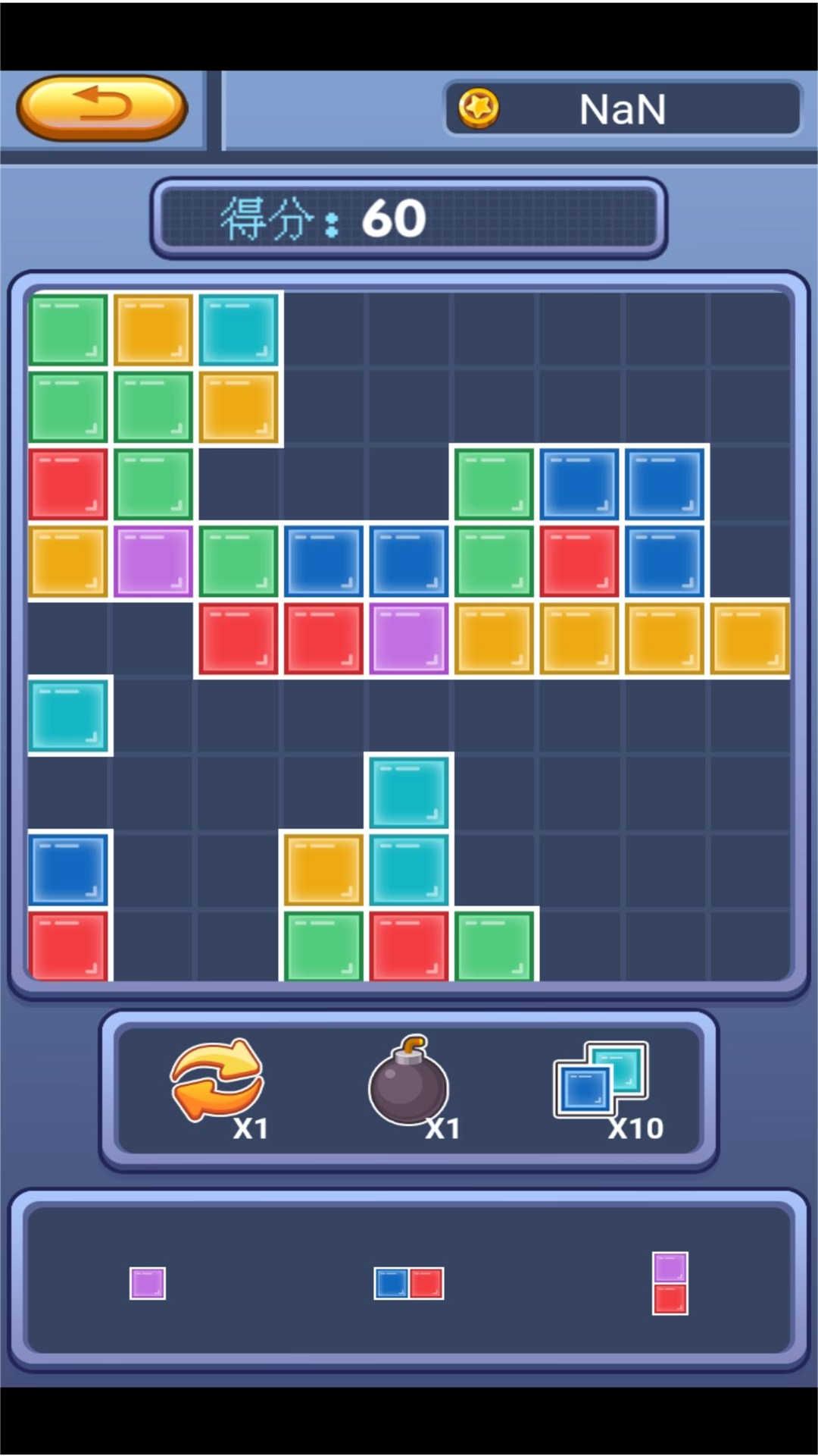 3、将方块摆放成完整的一行或多行,实现方块消除,从而获得分数。