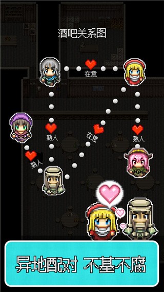 勇者27岁单身汉化版是题材新颖另类的RPG角色扮演类手游,玩家需要帮助勇者开启与众不同的脱单之旅。勇者27岁单身汉化版以促进角色之间的玩法机制为主要核心,并融合了放置经营、社交配对、角色成长等多种玩法。玩家不仅需要接待那些因种种原因单身至今的勇者们,还需聆听他们的烦恼,并安排他们与其他单身勇者共同冒险,缔结羁绊,最终助他们摆脱单身的命运。