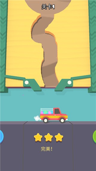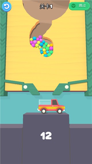 1、根据你挖出的隧道,球球会自动跟着隧道掉下来,直至落入货车的车厢当中。
