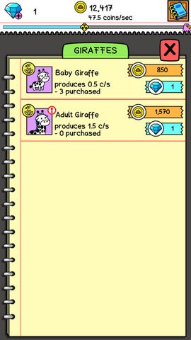 3、多次点击长颈鹿可以加快金币的获取,然后通过花钱的方式来补充图鉴。