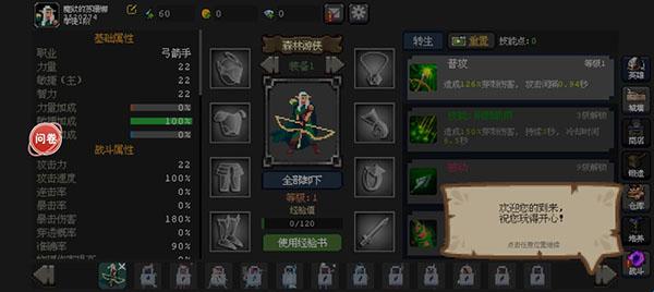 1、进入游戏后会过一小段指引,然后看到主要属性界面。