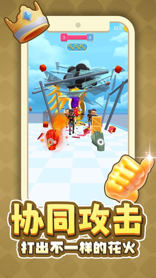 2、操控左右两只不同颜色的手套,通过发射彩色光波消灭敌人,视觉效果震撼。