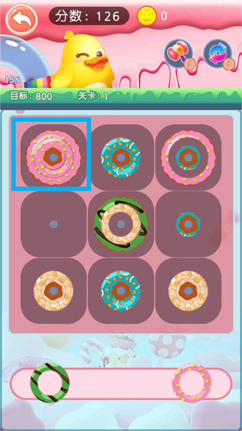2.在消除的时候一定要注意分清甜甜圈的颜色和样式,否则就是浪费时间。
