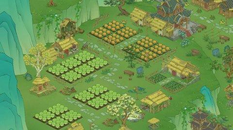 初始区域只能满足初期的发展需求,等谷主们完成新手引导,修建山路后,就可以来到小村;小村的资源比较丰富,面积更大,采集矿石资源的石矿洞就位于此处。