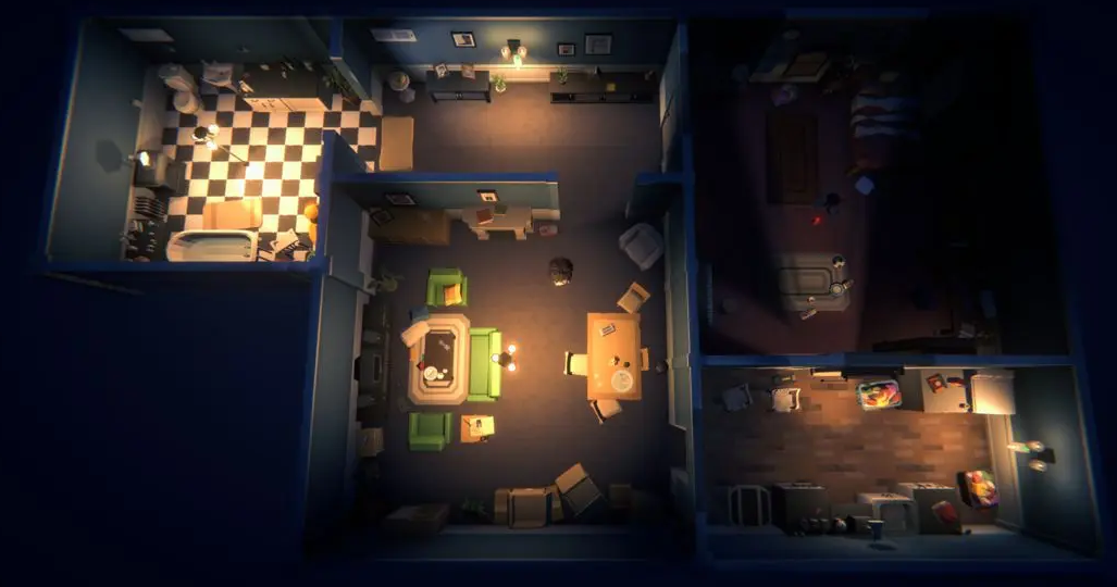 这时候,灯光不仅是指明玩家通往床边的通道,还成为找寻隐藏道具的探明工具,游戏为了实现这一功能,为玩家提供了操控/旋转灯光去照明的功能来对一个房间的四周针对性点亮/聚焦,既用有限的灯光限制,保证玩家时刻笼罩在黑暗环境,满足恐黑主题的同时,更容易发现被创作者隐藏起来的事物。