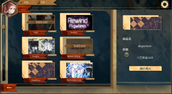 3、结合锐意创作的游戏美术作品,与乐曲和剧情主题相符的界面设计。