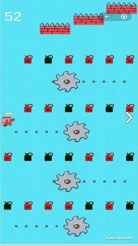 3、每一次点击都会消耗油量,碰到任何东西一下就挂,挂掉可以从平台位置继续,但有次数限制