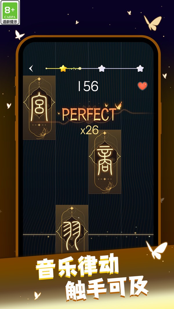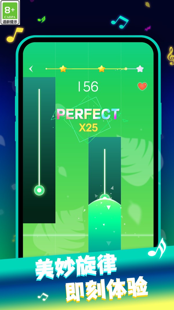 3、随着关卡难度的逐步提升,一心钢琴的玩法要求精准点击音符,锻炼指尖的速度和节奏感。
