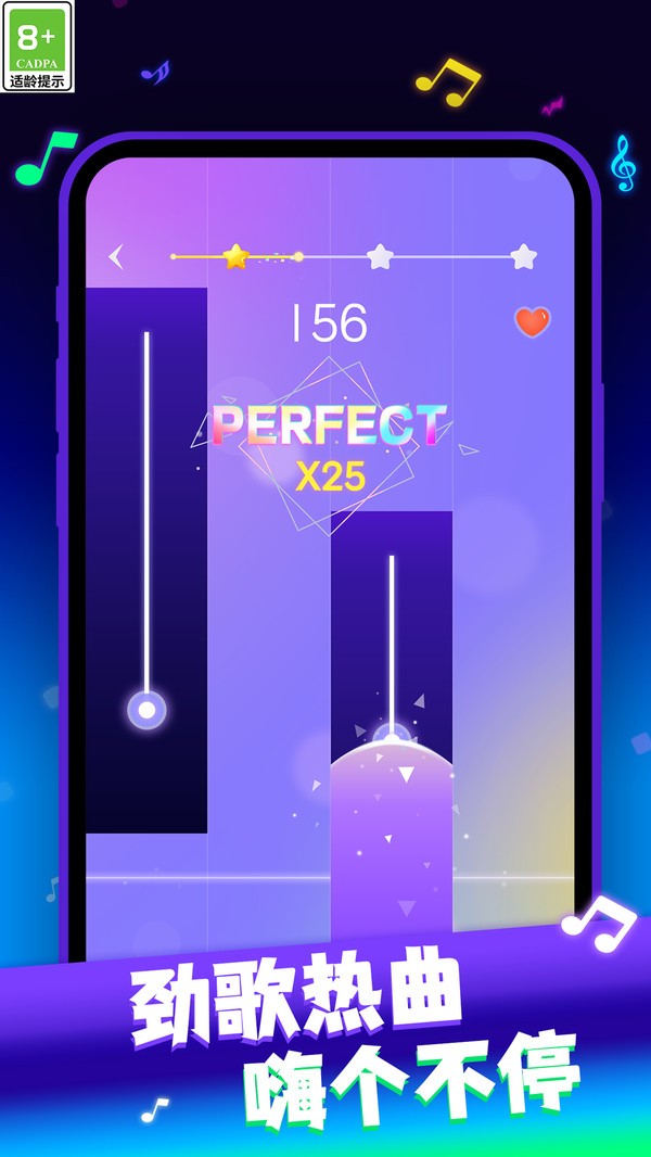 1、简单易上手:钢琴块采用直观的触摸控制方式,使得玩家能够轻松地开始游戏。无论你是新手还是有经验的玩家,都可以在短时间内掌握游戏的基本技巧。