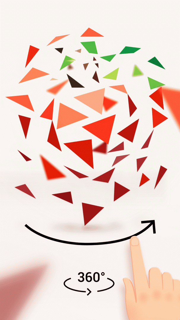1、通过不断旋转3D拼图碎片,合并出一幅漂亮的图案。