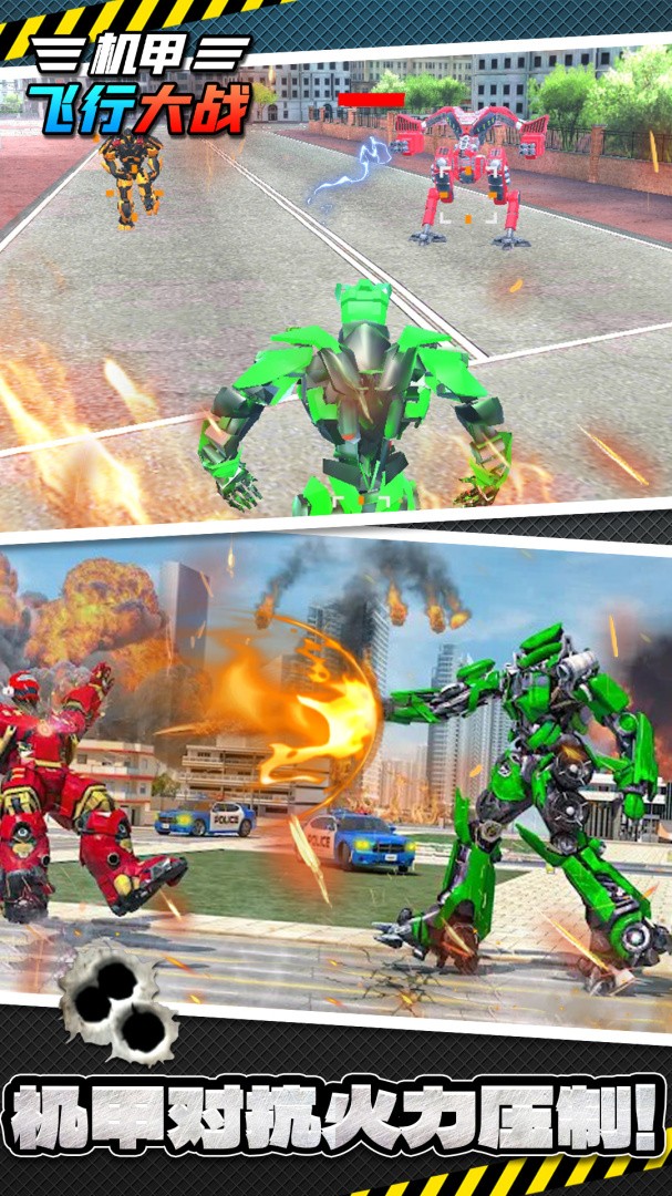 机甲飞行大战游戏中玩家们穿梭至未来科技城市,作为一名正义的机甲战士需要守卫居民们的安全!游戏中玩家们可以自由选择喜欢的机甲装备来完成对战,敌人可是非常狡猾的,非常考验玩家的灵活应变能力,借助高超的飞行水平以及射击技术一举消灭敌军!成为真正的正义使者!