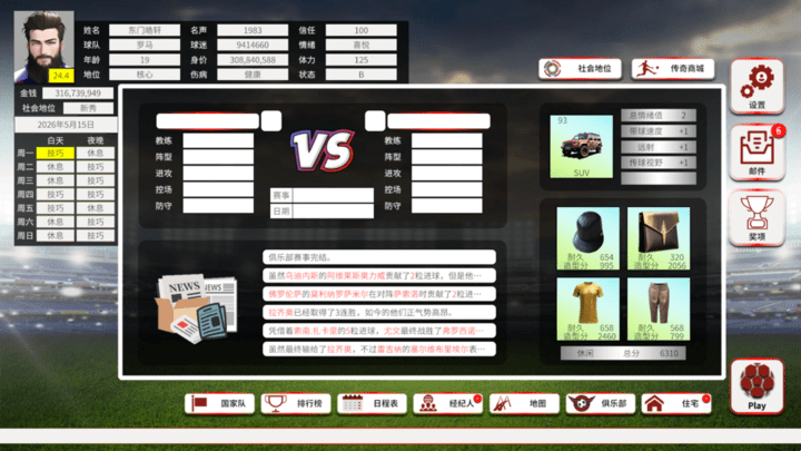 3、加入虚拟俱乐部,与其他玩家合作,制定战术并参加联赛比赛。通过合理的战术安排和团队协作,争夺冠军荣誉。