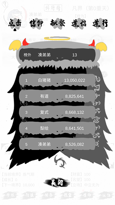 2、最简单的点击式修炼方式,轻松的即可享受到修真的乐趣。