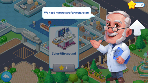 2、点击下方箭头标志,去帮助别的医院可以让我们赚取星星